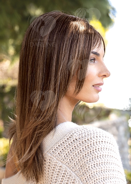 Теменная часть Monofilament - совершенно невидимая на коже ткань, в которую волосы вплетены вручную по одному. Затылочная и боковая часть - трессы, которые идеально повторяют форму головы и обеспечивают очень хорошую циркуляцию воздуха. Благодаря моноволокну в хорошо видимой теменной части головы гарантирован естественный внешний вид. Невидимая фронтальная линия, также называемая Lace Front - это невидимая сетка на лбу и в области висков, в которую волоски вплетены по одному вручную. Таким образом, линия роста волос выглядит естественно и может быть уложена по-разному, в том числе, зачесана назад.